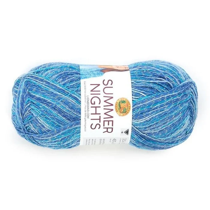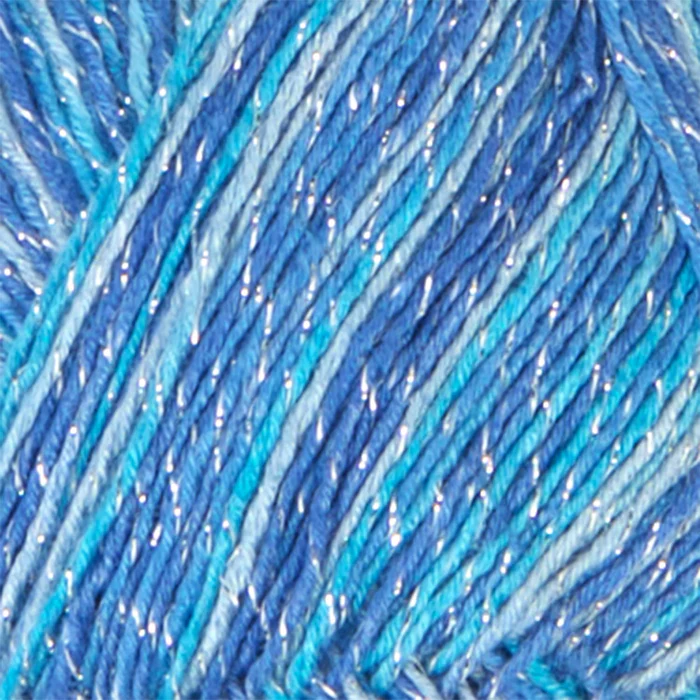 Summer nights, un estambre multicolor con un fino hilo metálico, es perfecto para tejer chales, bufandas o cualquier blusa o top que necesite un toque de brillo.
